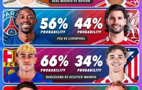 欧冠1/8决赛已经全部战罢,1/4决赛对...